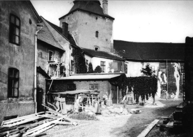 Když si pozorně prohlédnete snímky z té doby, napadne vás, že rekonstruovaná obvodová zeď vedle vstupní brány by mohla docela dobře být pozůstatek bývalého pivovárku a sladovny. Možná, že některý ze stavebních kamenů převzatých ze starých trosek, ještě pamatují dobu, když v těch místech zámecký sládek vařil slezskoostravské pivo.